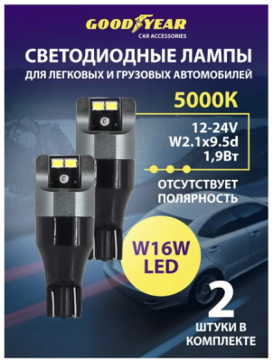 Лампа автомобильная светодиодная Goodyear W16WLED 12-24V /к-т 2шт