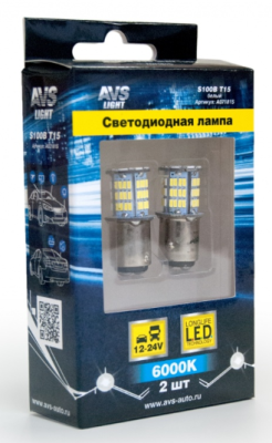 Светодиод AVS S100B T15/белый/ (BAY15d) 78SMD 3014 2 contact, коробка 2 шт.
