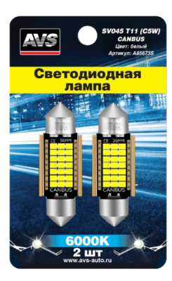Светодиод AVS SV045 T11/белый/ (SV8,5) CANBUS 21SMD 2016 36мм 12V., блистер 2 шт