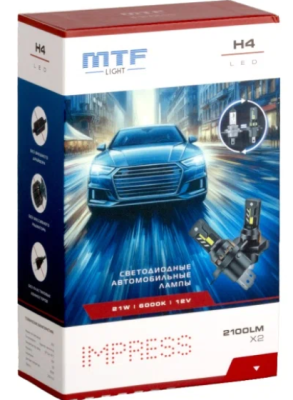 Светодиодные лампы MTF Light серия IMPRESS, H4/H19, 12V, 21W, 2100LM, 6000K,(как штатн. лампа), к-т.