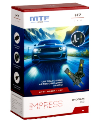 Светодиодные лампы MTF Light серия IMPRESS, H7, 12V, 21W, 2100LM, 6000K,(размер штатн. лампы), к-кт.
