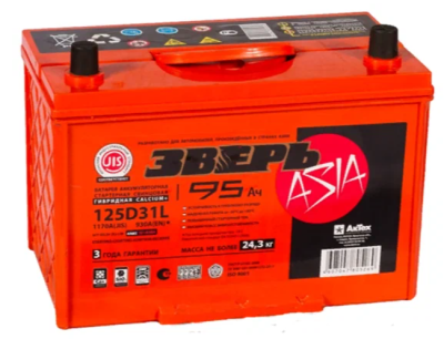 Аккумулятор ЗВЕРЬ ASIA L3Y 6CT-95.0 Обратная полярность код 260166