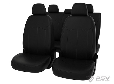 Чехлы VW Polo V 2009-> SEDAN, ДЕЛ. черный/отстрочка черная эко-кожа "PSV" Оригинал 125813