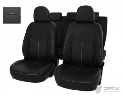 Чехлы Datsun On-Do 14- Раздельный черный/отстрочка белая, экокожа "Оригинал"PSV