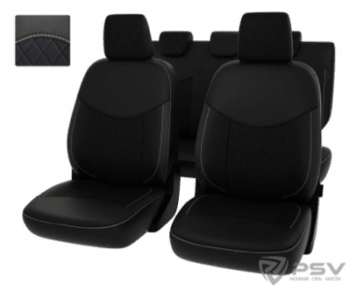 Чехлы Ford EcoSport 2014-> РОМБ, черный/отстрочка белая, экокожа "Оригинал"