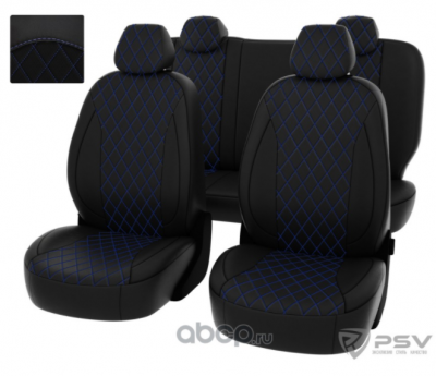 Чехлы Ford Focus III 2011-2019 г. - (Trend) РОМБ/отстрочка синяя, черная экокожа "Статус"