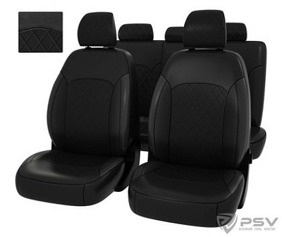Чехлы Hyundai Elantra VI (AD) 2015-> РОМБ черная отстрочка, черная экокожа "Оригинал"
