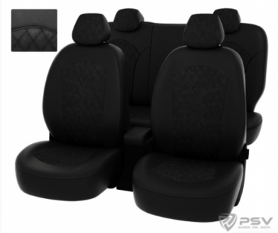 Чехлы Hyundai Solaris I 2010-2017 г. - Hb РОМБ/отстрочка черная, черная эк-жа + черн альк "Оригинал"