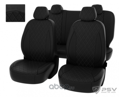 Чехлы Hyundai Solaris II/Kia Rio IV 2017-> Sd Comf/Prest РОМБ/отстр черная, чер экокожа "Статус"