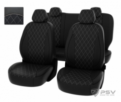 Чехлы Hyundai Solaris II/Kia Rio IV 2017-> Sedan, Comfort/Prestige РОМБ/отстрочка белая, черная перф