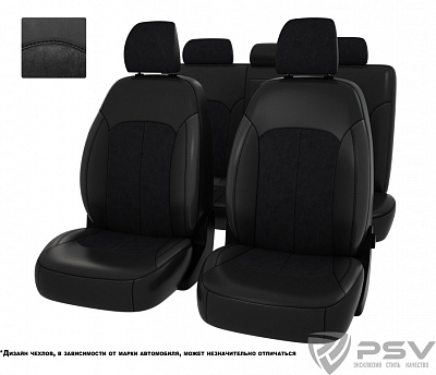 Чехлы Kia Rio IV X-Line 2017-> Wag, черная экокожа + черная алькантара "Оригинал"PSV