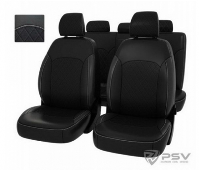 Чехлы Kia Sportage IV 2016-> РОМБ, черный/отстрочка белая, экокожа "Оригинал"PSV