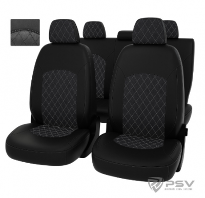 Чехлы Lada Granta I 2018-> дел. Рестайлинг, Люкс РОМБ/отстр сер, черн эк-жа + т.сер альк *Оригинал*