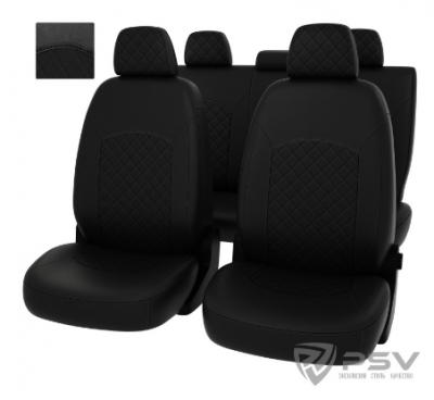 Чехлы Lada Granta I 2018-> дел. Рестайлинг, Люкс РОМБ/отстрочка черная, черная экокожа *Оригинал*