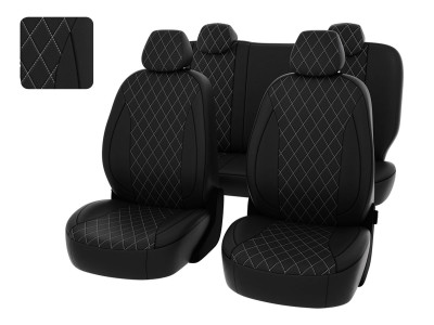 Чехлы Lada Granta I 2018-> Рестайлинг, Люкс, деленная спинка, РОМБ/отстрочка белая, черная перфориро