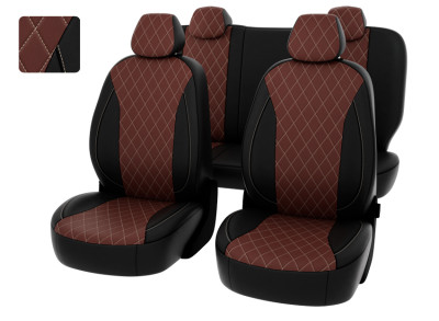 Чехлы Lada Granta I 2018-> Рестайлинг, Люкс, деленная спинка, РОМБ/отстрочка бежевая, черно-коричнев