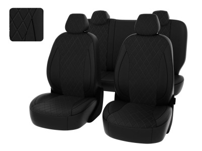 Чехлы Lada Granta I 2018-> Рестайлинг, Норма/Комфорт, сплошная спинка, РОМБ/отстрочка черная, перфор