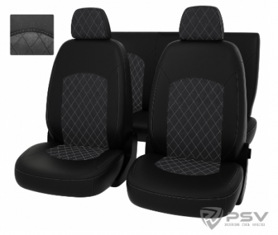 Чехлы Lada Granta I Sedan (2018-н.в.) Норма/Комфорт, Спл. Экокожа + Альк, РОМБ/отстрочка красн PSV