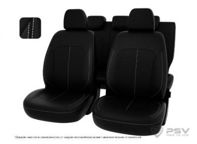 Чехлы Lada Priora I 2007-2013 г. - Hatchback, Wagon, черный/отстрочка белая экокожа *Оригинал*PSV