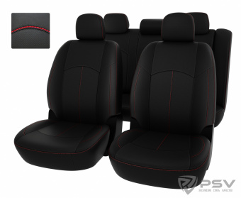 Чехлы Mitsubishi Lancer IX 2000-2010 г. - Sd, РОМБ /отстрочка черная, черная экокожа + черная алькан