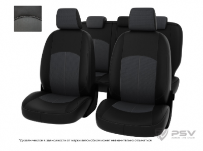 Чехлы Nissan Almera III 2012-> Раздельльная спинка . черно-серая экокожа "Оригинал""PSV"