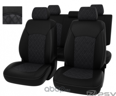 Чехлы Nissan Juke 2010-> РОМБ/отстрочка красная, черн эк-жа + черн альк "Оригинал"