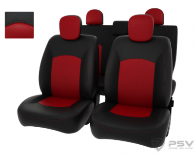 Чехлы Renault Duster I 2011-2015 с пакетом "Безопасности" черно-красная экокожа "Оригинал"PSV