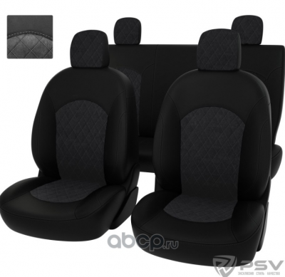 Чехлы Renault Logan/Sandero/Stepway 2012-> дел. РОМБ/отстрочка сер, чер эк-жа + т.сер алк *Оригинал*