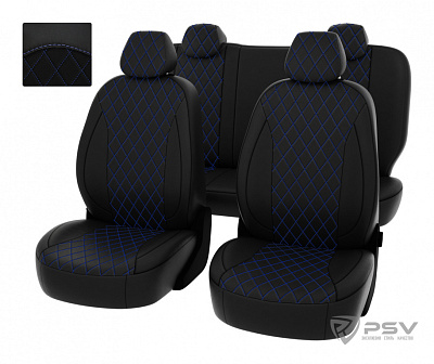 Чехлы Toyota Rav4 IV 2012-> РОМБ/отстрочка синяя, черная экокожа "Статус"