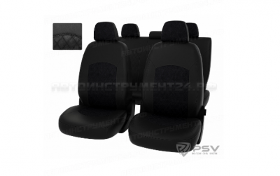 Чехлы VW Polo V 2009-> Sd дел. РОМБ, черный экокожа + черная алькантара "Оригинал"