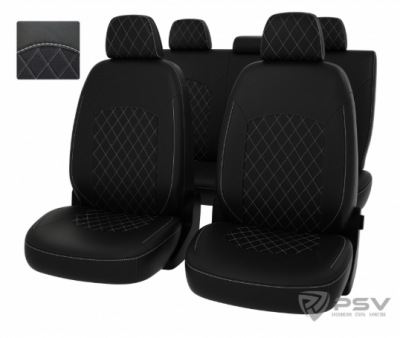 Чехлы VW Polo V 2009-> Sd спл. РОМБ/отстрочка белая, черная экокожа "Оригинал"PSV