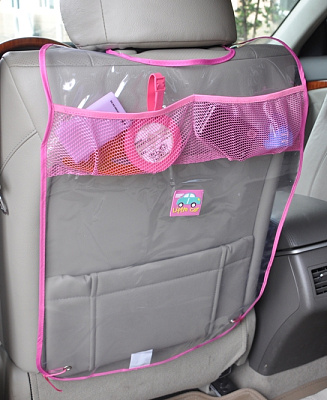 Защита - органайзер на спинку переднего сидения Little Car розовый кант