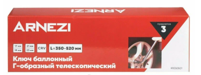 Ключ колёсный баллонный, телескопический, Г-образный, 17x19мм 1/2" DR, CrV в кейсе ARNEZI R1050501