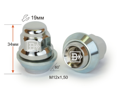 Гайка M12X1,50 Хром высота 30мм кл 19мм