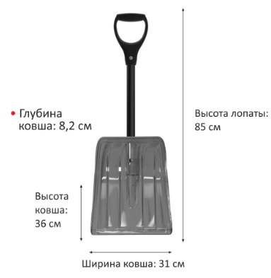 Лопата снеговая 85*31*8 ковш ПП №1 черный Авто/черенок ФГ желтый/V-ручка черная