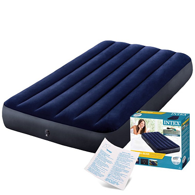 INTEX Кровать надувная DOWNY BED, (fiber-tech), встроенный ножной насос, 76x191x25см, ПВХ, 64760