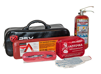 Набор автомобилиста "Люкс" PSV (огнетушитель,знак,аптечка,тросс,перчатки)