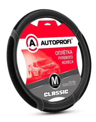 Оплётка руля, серия Classic, стандартная экокожа,контрастная прострочка, чёрн./белый, разм. М