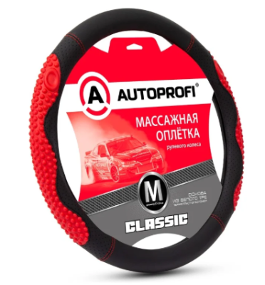 Оплётка руля, серия Classic, стандартная экокожа, массажные вставки чёрн./красный, разм. М