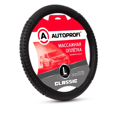 Оплётка руля, серия Classic, стандартная экокожа массажные вставки из плотн силикона, чёрный, разм.L