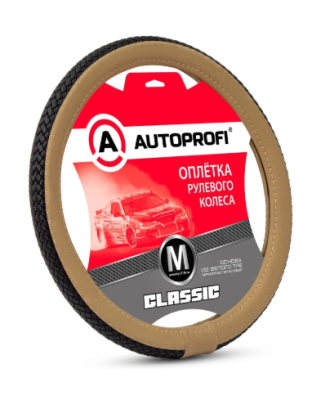 Оплётка руля, серия Classic, стандартная экокожа, плетёная вставка по центру, черный/т.бежевый, разм