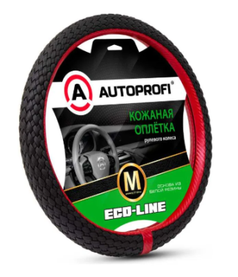 Оплётка руля, серия Eco-Line, премиальная экокожа, полностью плетёная, чёрн./красный, разм. М