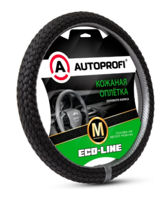 Оплётка руля со скосом, серия Eco-Line, премиальная экокожа, полностью плетёная, чёрн./т.серый, разм