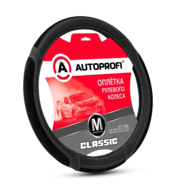 Оплётка руля, серия Classic, стандартная экокожа,контрастная прострочка,PU-503 BK/D.GY (M)