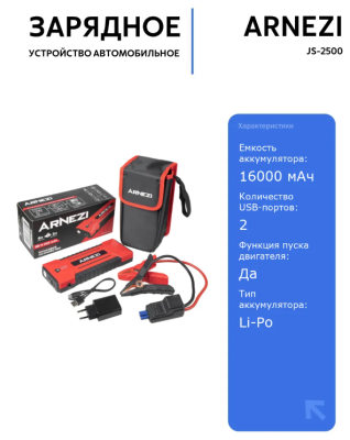 Портативное пусковое (зарядное) устройство ARNEZI JS-2500, 16000 мАч